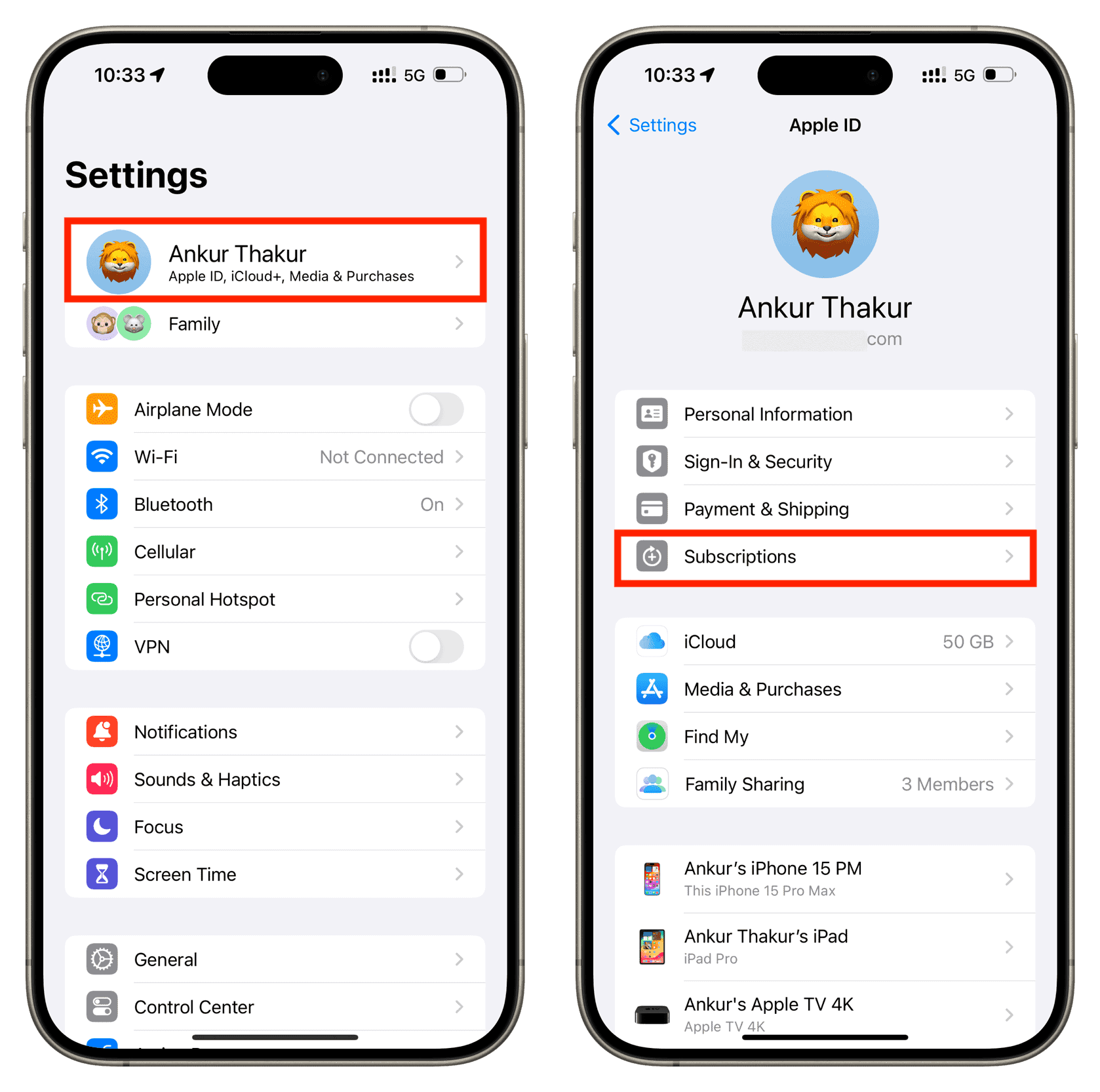 - Go to Apple Account → Subscriptions.