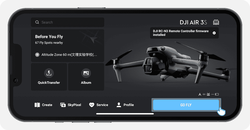 - DJI Fly ऐप इंस्टॉल हो गया है