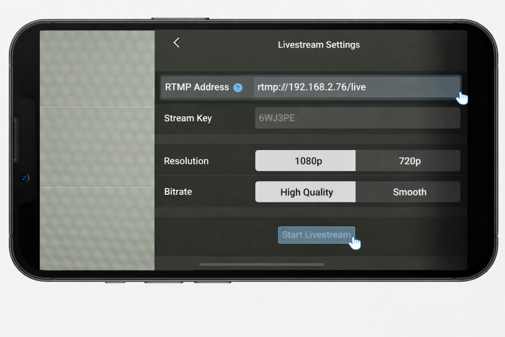 DJI Fly + Live Now का उपयोग करके आप DJI ड्रोन फुटेज को किसी भी RTMP प्लेटफॉर्म पर लाइवस्ट्रीम करने का सबसे आसान तरीका अपना सकते हैं। Live Now के साथ, आप ओवरले, स्कोरबोर्ड, ब्रांडिंग और बेहतर स्ट्रीम कंट्रोल भी जोड़ सकते हैं। कुछ ही मिनटों में स्ट्रीमिंग शुरू करें और पेशेवर तरीके से लाइव स्ट्रीमिंग का आनंद लें।