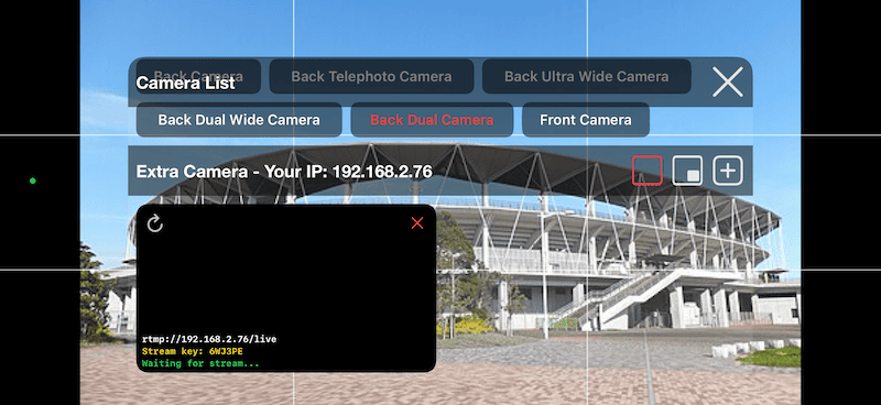 rtmp://[IP]/live - स्ट्रीम कुंजी: उसी स्क्रीन पर प्रदर्शित होती है